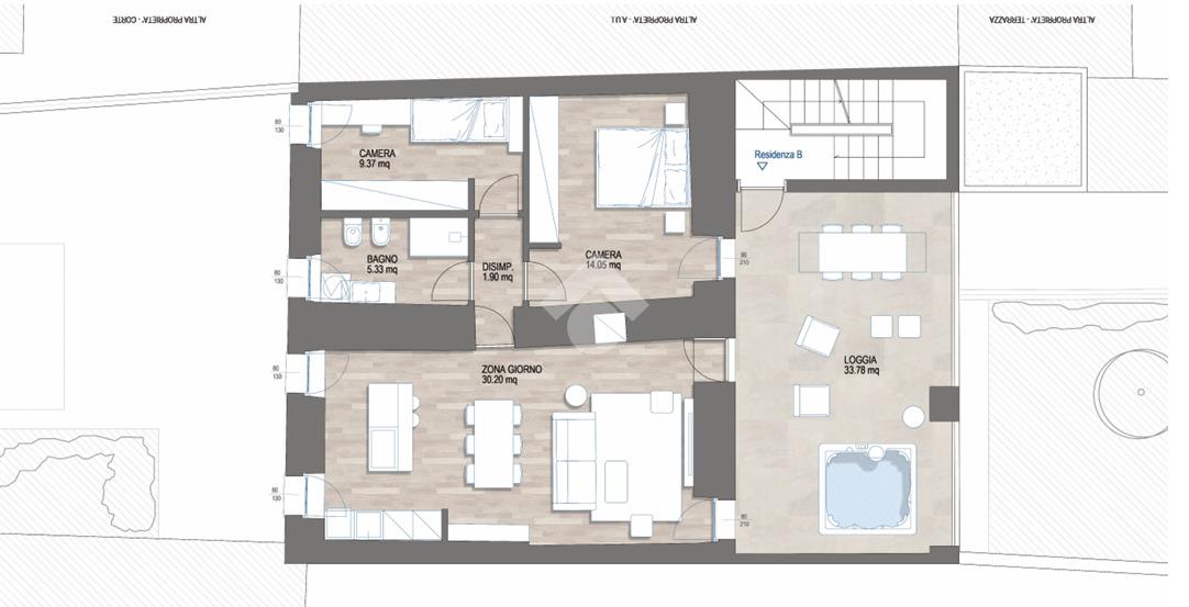 Proponiamo in vendita appartamento trilocale al primo piano, con ampia loggia coperta, ideale per vivere l’outdoor in ogni stagione. Gli interni offrono una spaziosa zona giorno open space, due camere da letto e un bagno, in un perfetto equilibrio tra funzionalità e design.