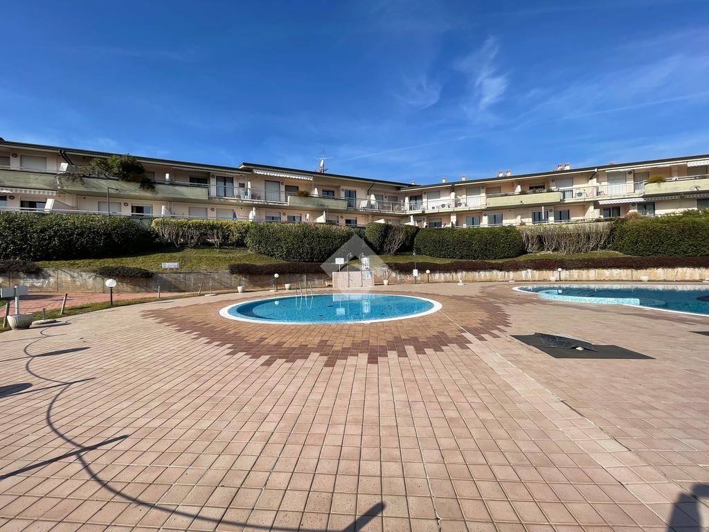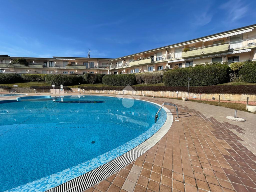 Con grande terrazzo di oltre 25 mq appartamento con splendida vista sul parco e sulla piscina. L' immobile si compone di ingresso, soggiorno, cucina separata, camera matrimoniale e bagno con finestra. Doppio accesso al terrazzo , sia dalla camera che dal living. L' immobile è ubicato a soli 100 metri dal lago e dalla spiaggia e distante pochi passi dal centro del paese. Il complesso dispone di ascensore che collega al piano interrato in cui trova spazio il garage di proprietà.