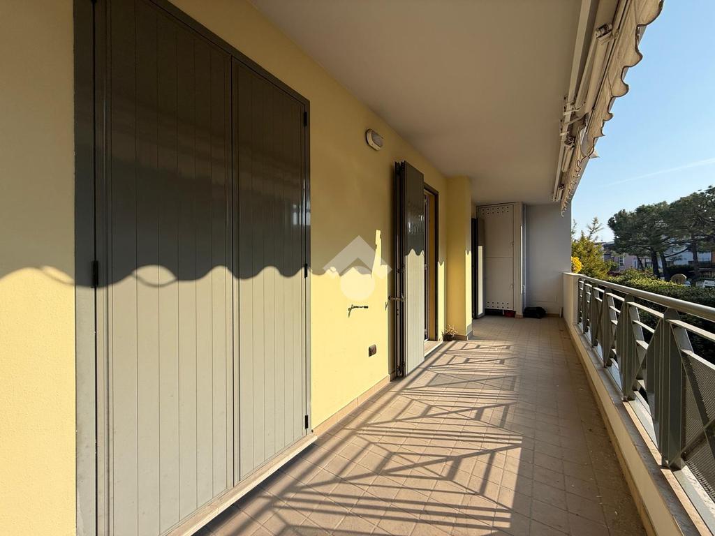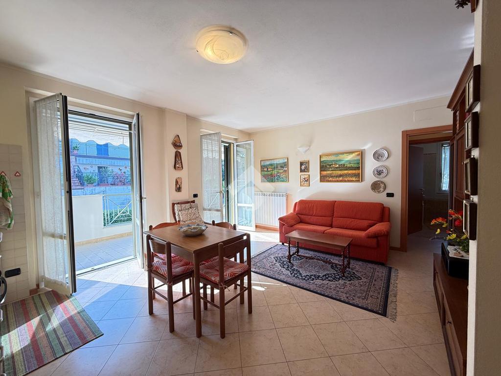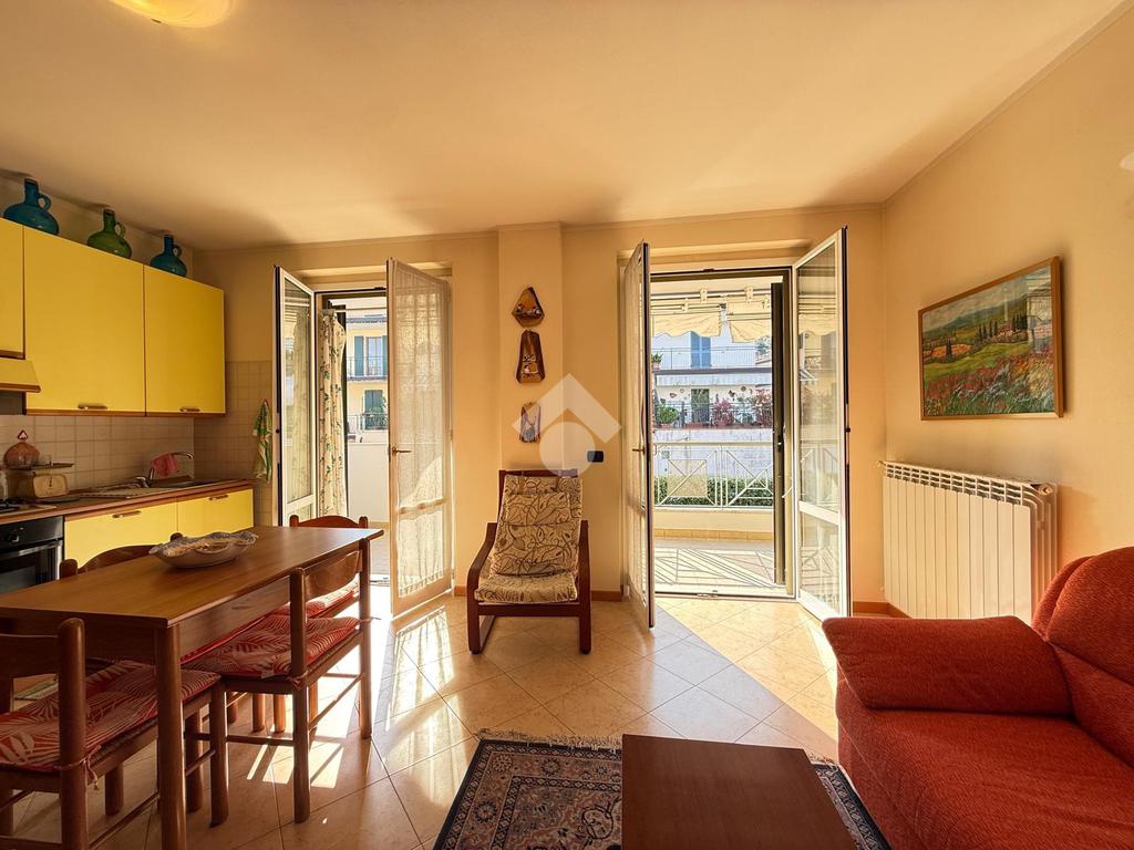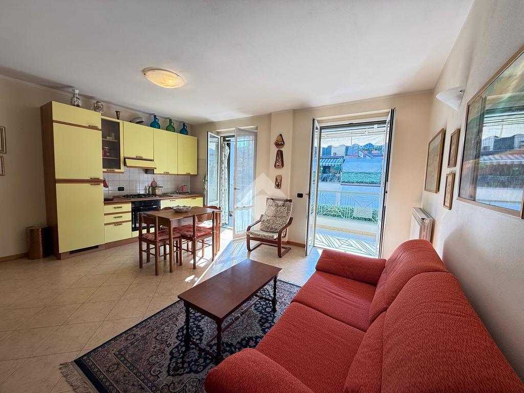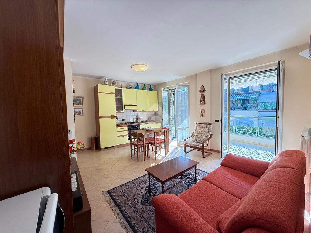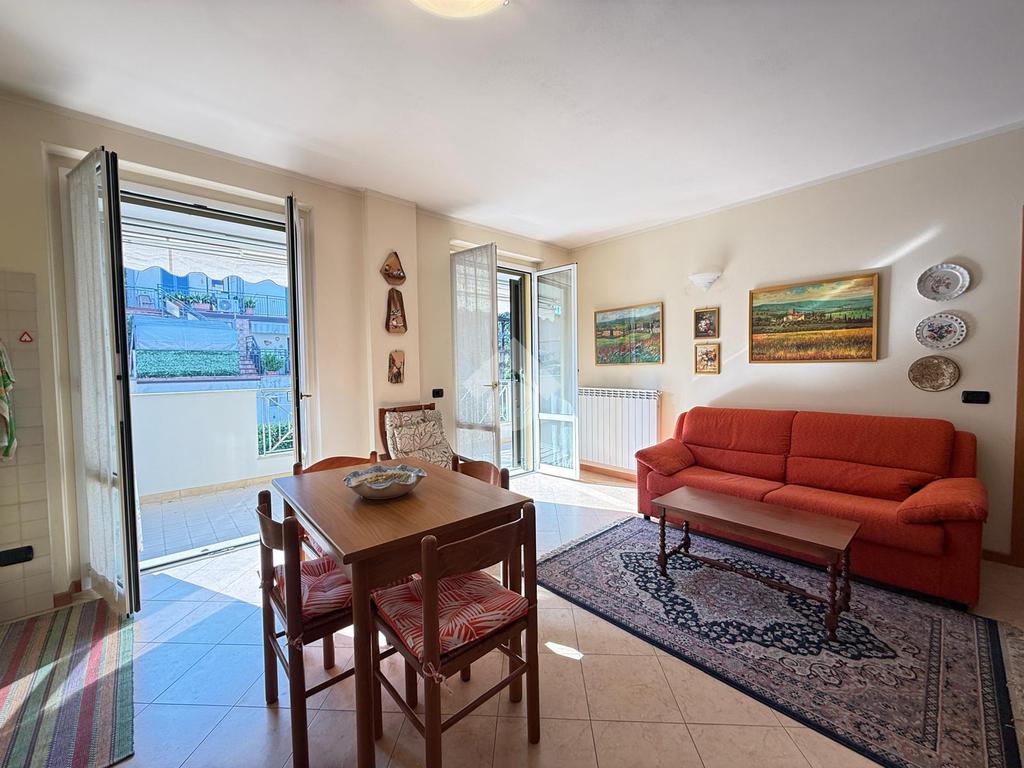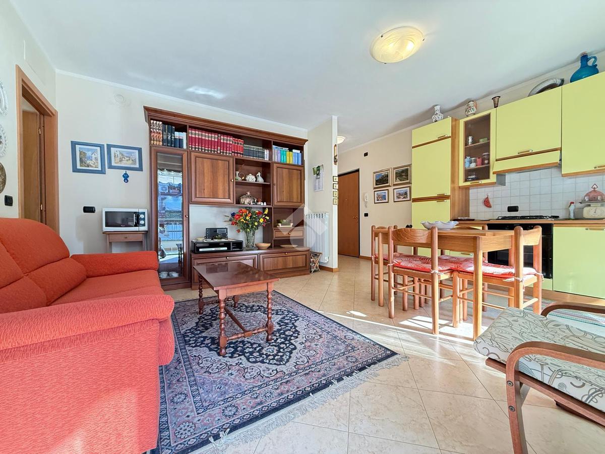 Inserito all' interno di palazzina di recente costruzione, dotata di ascensore, appartamento d' angolo posto al primo piano e dotato di grande terrazzo coperto. La palazzina è in eccellenti condizioni, le facciate esterne e gli spazi comuni interni sono stati oggetti di totale rinnovo nell' anno in corso. L' ingresso apre sulla zona living e sull' angolo cottura che affacciano sul grande loggiato al quale si accede attraverso due grandi porte finestre. La zona giorno dispone pertanto, di due grandi punti luce, che garantiscono forte luminosità agli ambienti. la zona giorno ospita, oltre che il living e la cucina, un comodo ripostiglio. Nella zona notte trova spazio la camera matrimoniale (provvista di porta finestra che garantisce l' accesso al terrazzo) e il bagno finestrato. Nel locale interrato si trova il garage. L' ubicazione del contesto è molto interessante in quanto comoda alla stazione, al centro del paese e ad ogni negozio e ad ogni genere di servizio. L' immobile viene venduto completo di recente arredo completo.