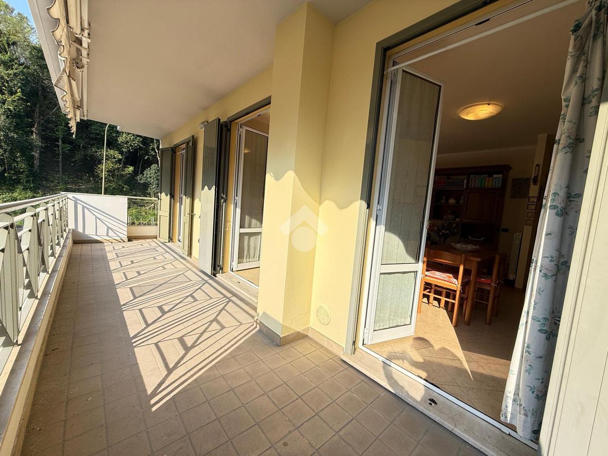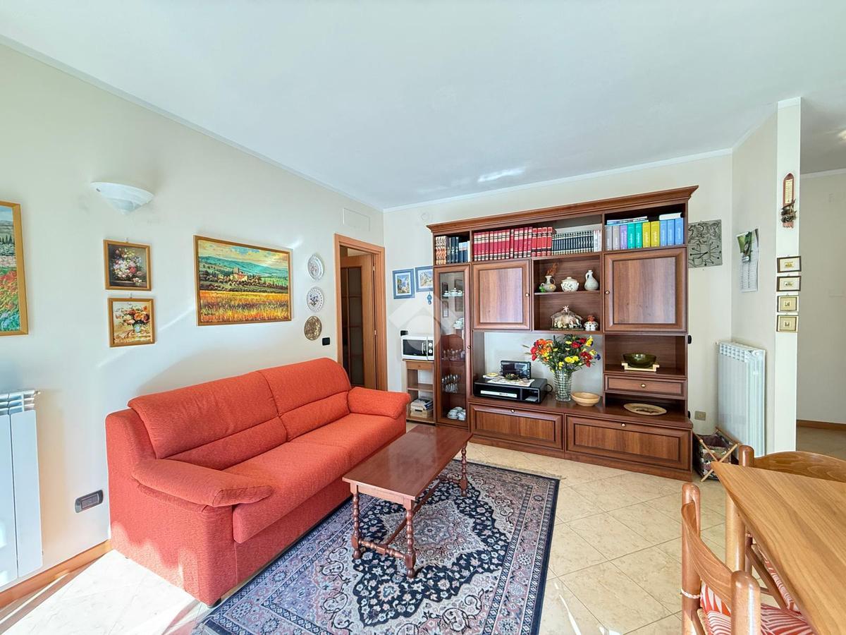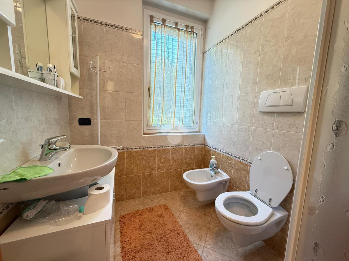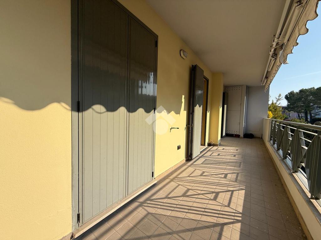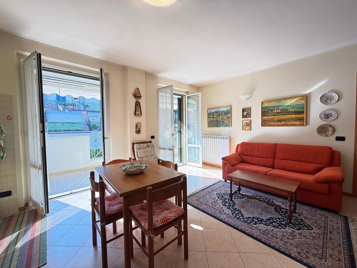 Inserito all' interno di palazzina di recente costruzione, dotata di ascensore, appartamento d' angolo posto al primo piano e dotato di grande terrazzo coperto. La palazzina è in eccellenti condizioni, le facciate esterne e gli spazi comuni interni sono stati oggetti di totale rinnovo nell' anno in corso. L' ingresso apre sulla zona living e sull' angolo cottura che affacciano sul grande loggiato al quale si accede attraverso due grandi porte finestre. La zona giorno dispone pertanto, di due grandi punti luce, che garantiscono forte luminosità agli ambienti. la zona giorno ospita, oltre che il living e la cucina, un comodo ripostiglio. Nella zona notte trova spazio la camera matrimoniale (provvista di porta finestra che garantisce l' accesso al terrazzo) e il bagno finestrato. Nel locale interrato si trova il garage. L' ubicazione del contesto è molto interessante in quanto comoda alla stazione, al centro del paese e ad ogni negozio e ad ogni genere di servizio. L' immobile viene venduto completo di recente arredo completo.