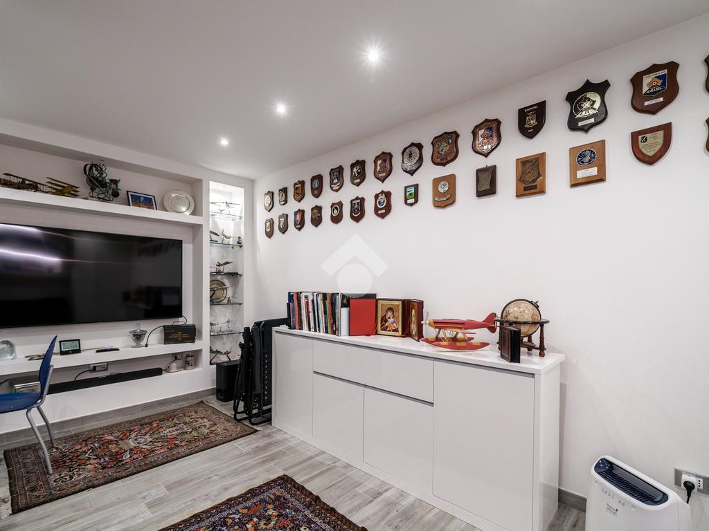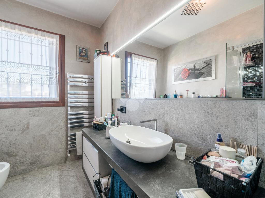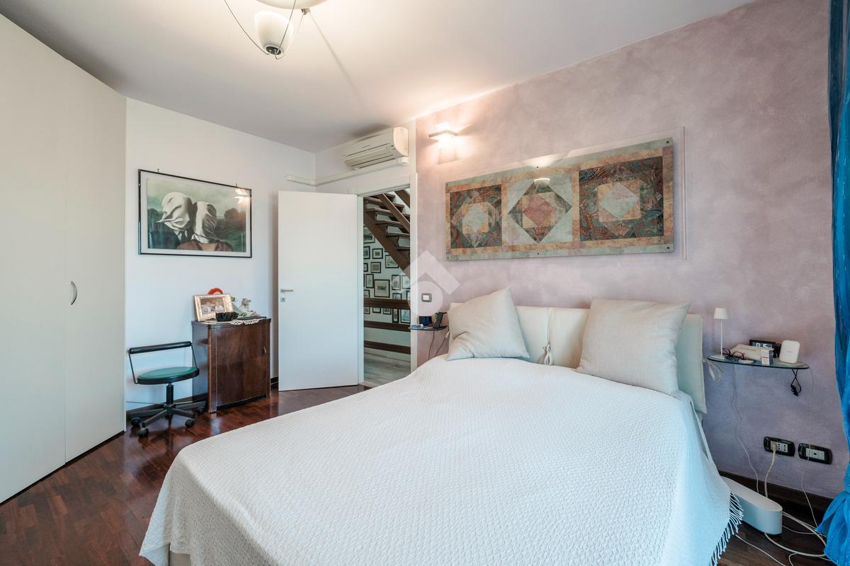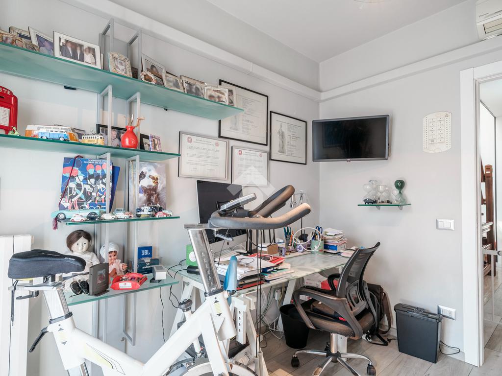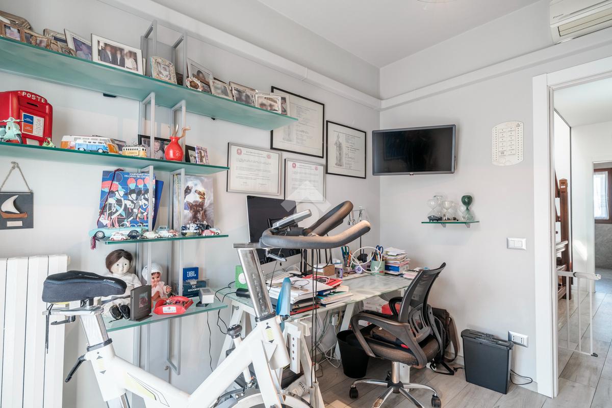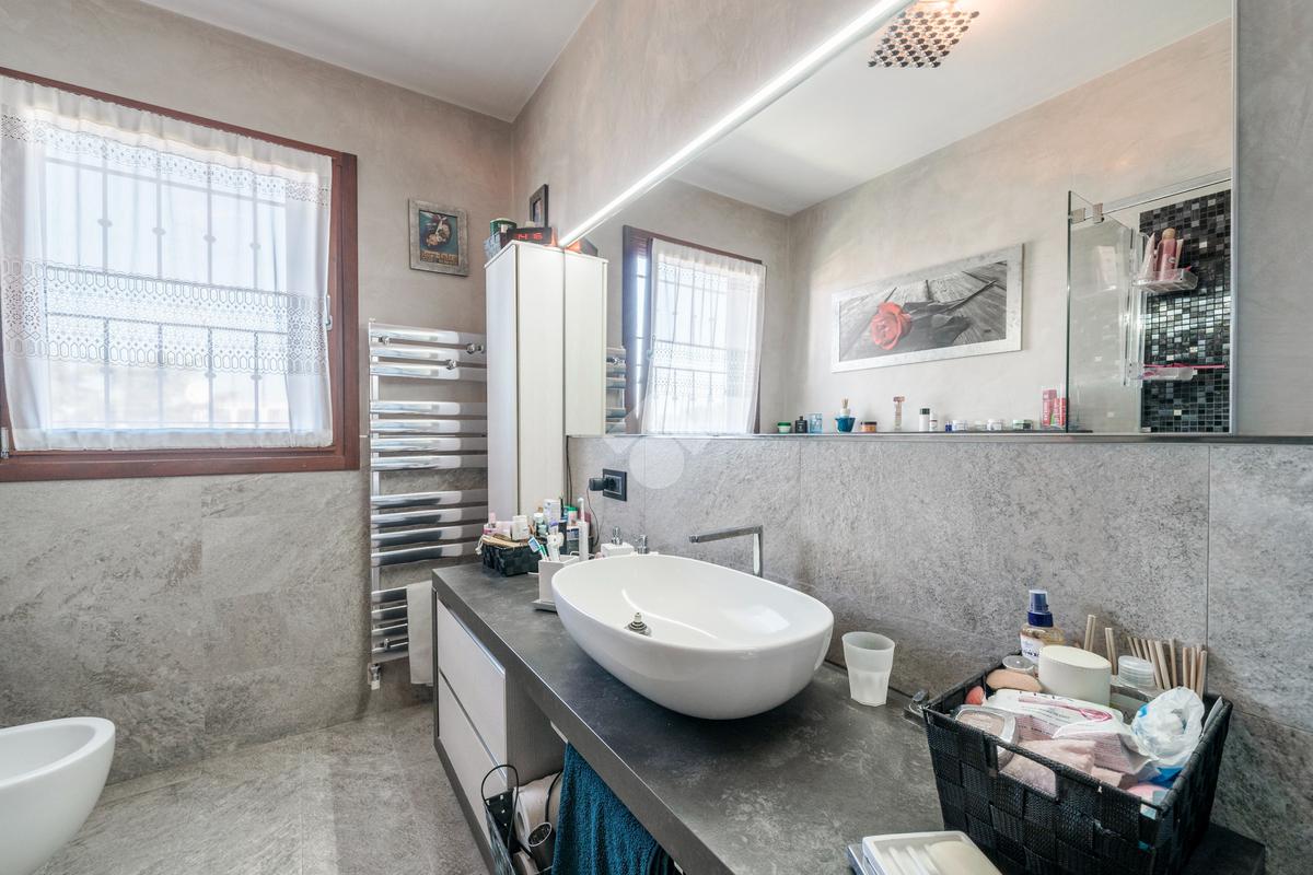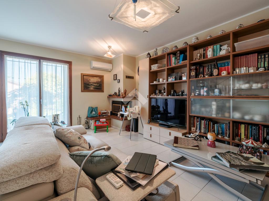 Ubicata in zona comoda al centro, alla stazione, ai negozi, ai supermercati e a tutti i principali servizi, villetta a schiera di recente costruzione con doppia porzione di giardino esclusivo posto sul fronte e sul retro dell' abitazione. Il giardino privato, in particolare, posto sul fronte dell' abitazione è molto spazioso e può ospitare comodamente una piscina. L' ingresso pedonale privato attraversa il giardino e conduce al porticato dal quale si accede all' interno dell' abitazione. Al piano terreno trovano spazio il soggiorno con camino, la cucina abitabile con accesso al porticato ed alla porzione di giardino posto sul retro dell' abitazione e il primo bagno finestrato. Il piano primo ospita la tre camere da letto (tutte dotate di porta finestra con sfogo sui terrazzi posti al piano primo) e il secondo bagno con finestra. Il piano superiore è occupato dalla zona sottotetto in cui è attualmente presente un grande locale open space adibito a camera. Al piano interrato si trovano i due garage, la grande taverna e la lavanderia. L' immobile è stato, di recente, parzialmente ristrutturato. La ristrutturazione ha previsto il rifacimento dei tre servizi, dei serramenti, delle porte interne, del pavimento in due piani dell' abitazione e l' installazione dei pannelli sul tetto.
