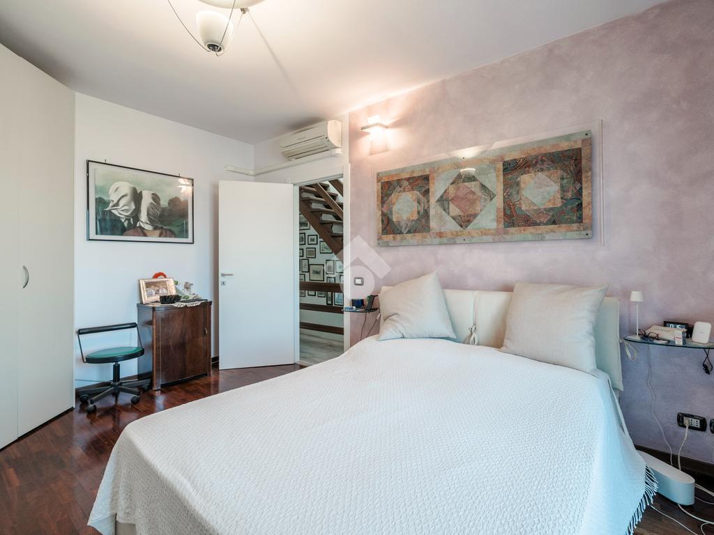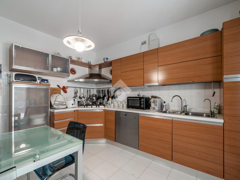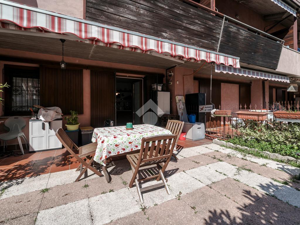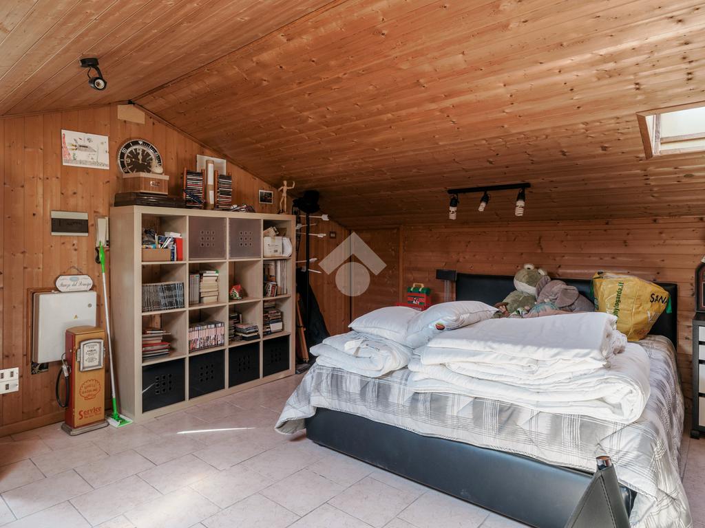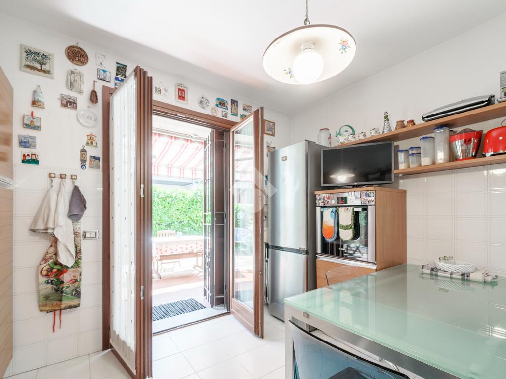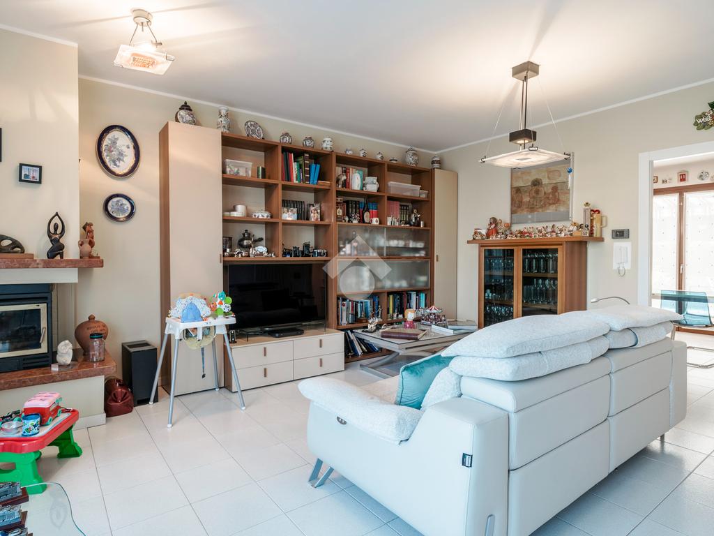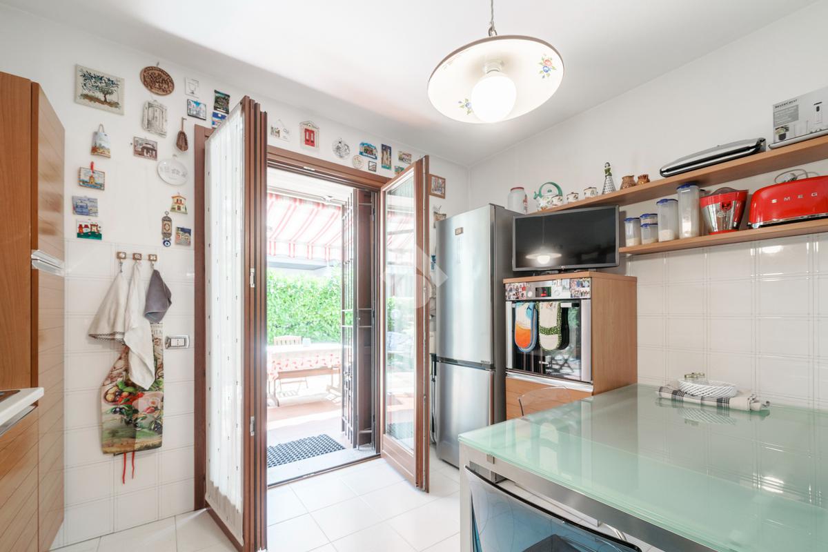 Ubicata in zona comoda al centro, alla stazione, ai negozi, ai supermercati e a tutti i principali servizi, villetta a schiera di recente costruzione con doppia porzione di giardino esclusivo posto sul fronte e sul retro dell' abitazione. Il giardino privato, in particolare, posto sul fronte dell' abitazione è molto spazioso e può ospitare comodamente una piscina. L' ingresso pedonale privato attraversa il giardino e conduce al porticato dal quale si accede all' interno dell' abitazione. Al piano terreno trovano spazio il soggiorno con camino, la cucina abitabile con accesso al porticato ed alla porzione di giardino posto sul retro dell' abitazione e il primo bagno finestrato. Il piano primo ospita la tre camere da letto (tutte dotate di porta finestra con sfogo sui terrazzi posti al piano primo) e il secondo bagno con finestra. Il piano superiore è occupato dalla zona sottotetto in cui è attualmente presente un grande locale open space adibito a camera. Al piano interrato si trovano i due garage, la grande taverna e la lavanderia. L' immobile è stato, di recente, parzialmente ristrutturato. La ristrutturazione ha previsto il rifacimento dei tre servizi, dei serramenti, delle porte interne, del pavimento in due piani dell' abitazione e l' installazione dei pannelli sul tetto.